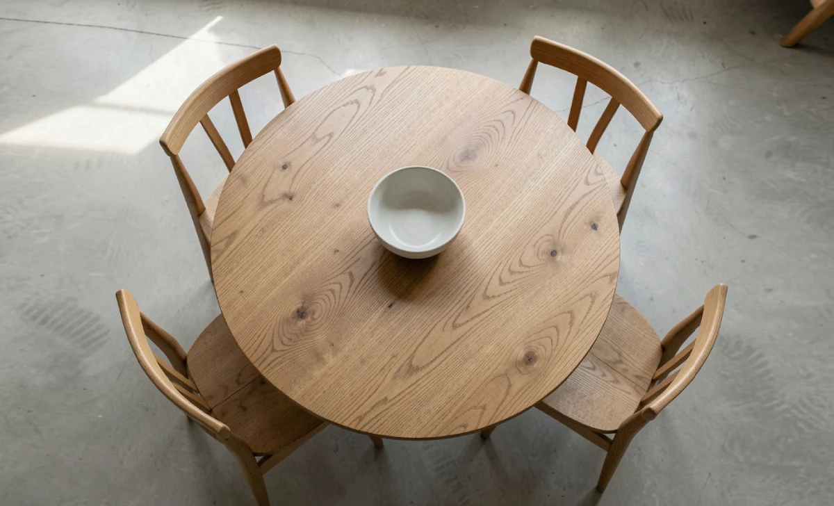 Round wood tables sit at the center of this shift. They are not a trend in the way that color palettes are trends. They are a practical choice that a lot of people are discovering for the first time after years of defaulting to a rectangular table because it seemed like the “normal” option.